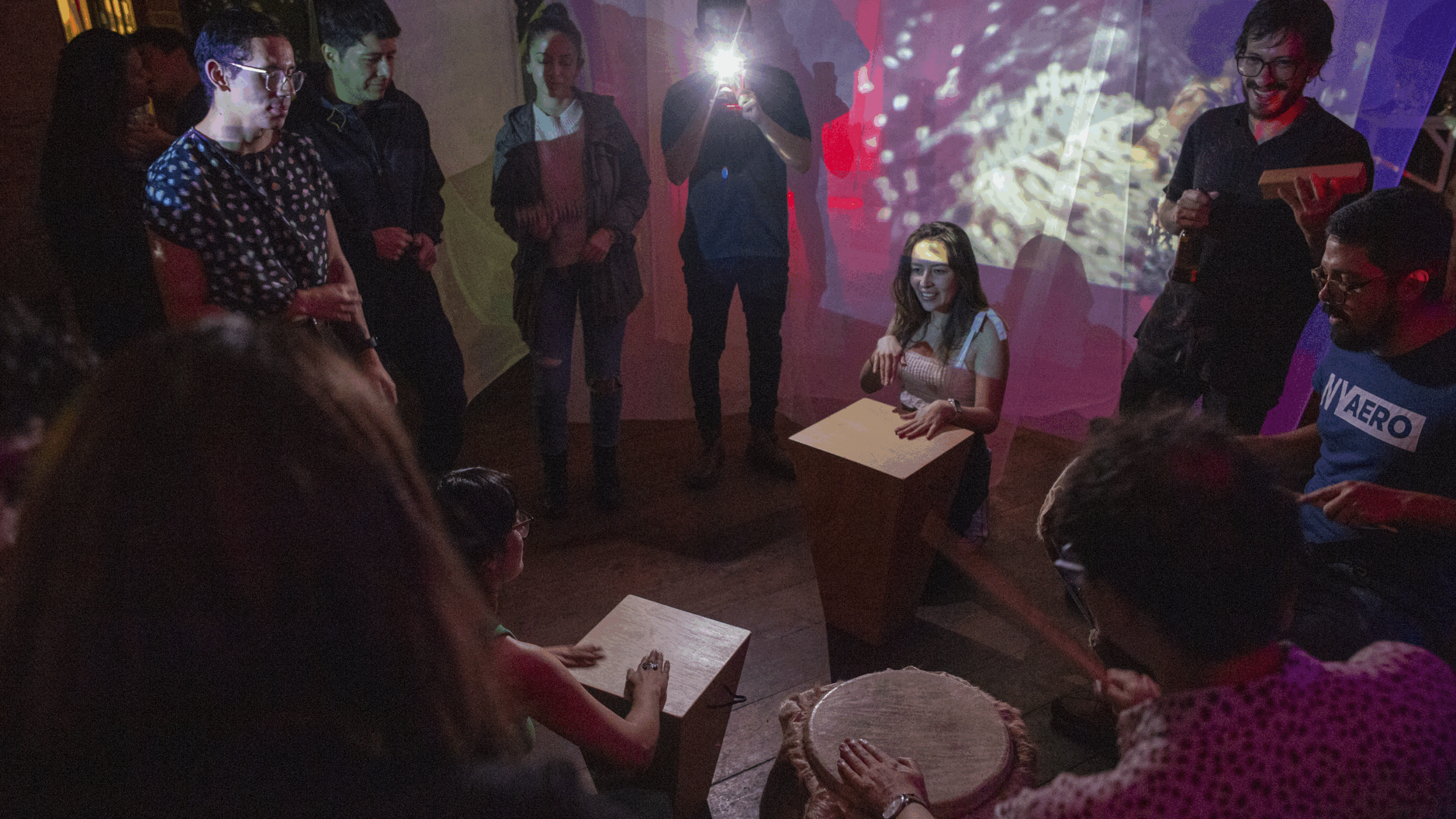 Un jam interdisciplinario sensorial e interactivo de principio a fín donde el público es parte de la experiencia interactuando con distintas disciplinas y artistas que se presentan esporádicamente por distintos espacios del lugar. El público puede modificar e interactuar con la escenografía, aprender y aportar artísticamente a través instrumentos musicales de Zambaje, aprender a moverse en una lira o una tela aérea generando sombras entre las imágenes proyectadas en telas translúcidas en medio del ambiente, bailar y disfrutar de la música, explorar distintas texturas, sabores, olores que hay en el ambiente o solo sentarse y quedarse sintiendo y contemplando lo que está sucediendo a su al rededor.